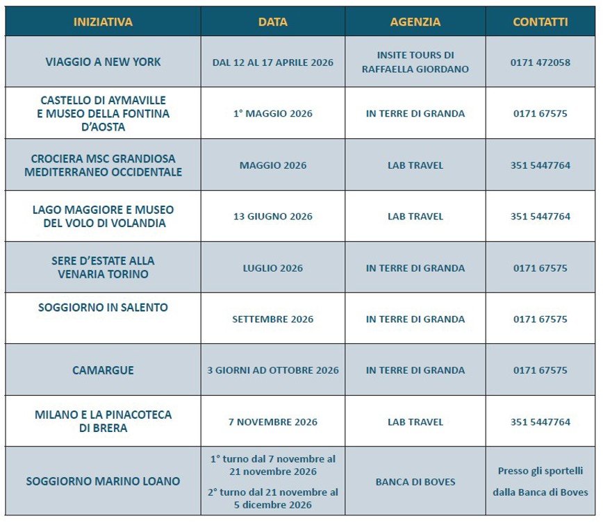 Tutte le iniziative prevedono notevoli riduzioni per i Soci Bisalta Vita!